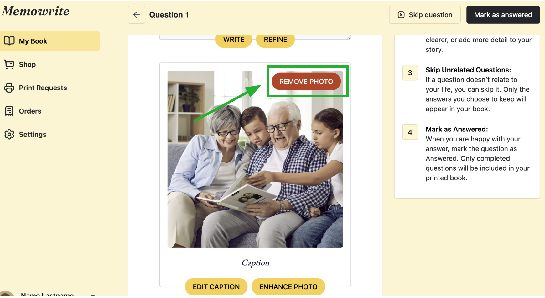 - Click the ‘Remove photo’ icon in the top-right corner to remove it.